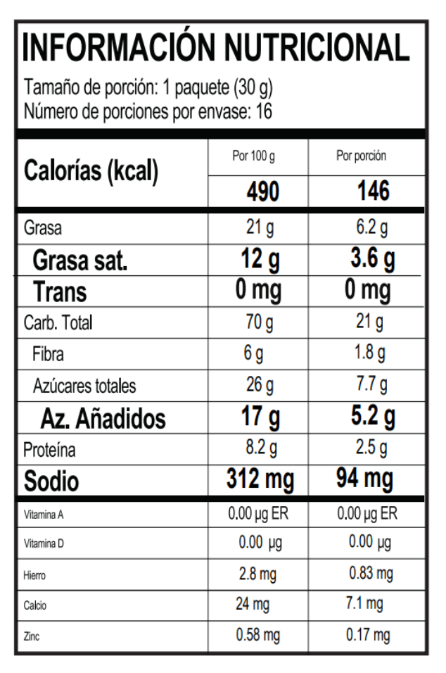 Textura semi crocante, sabor suave y con trocitos de frutos rojos naturales. Un antojo ligero y natural que se disfruta solo, con una bebida fría o como acompañante en una tarde relajada. Rico, práctico y sin excesos.